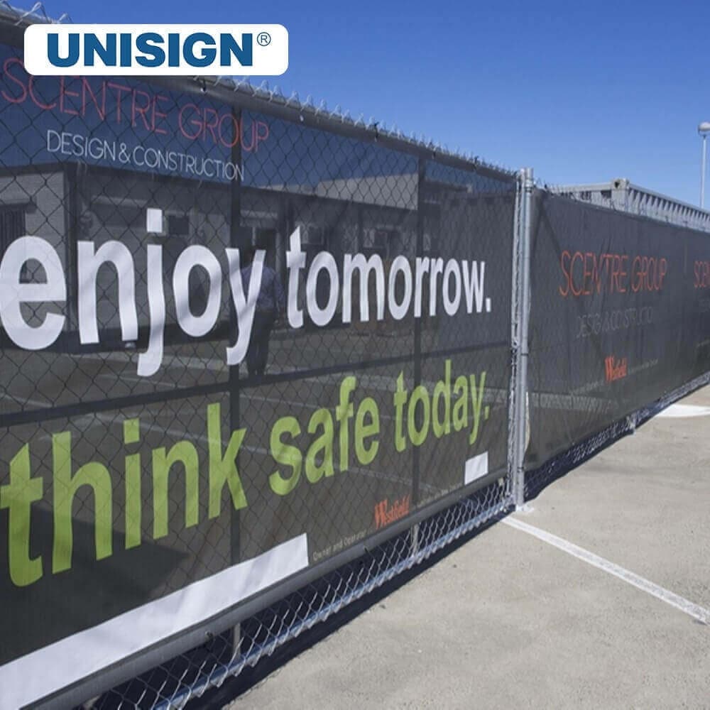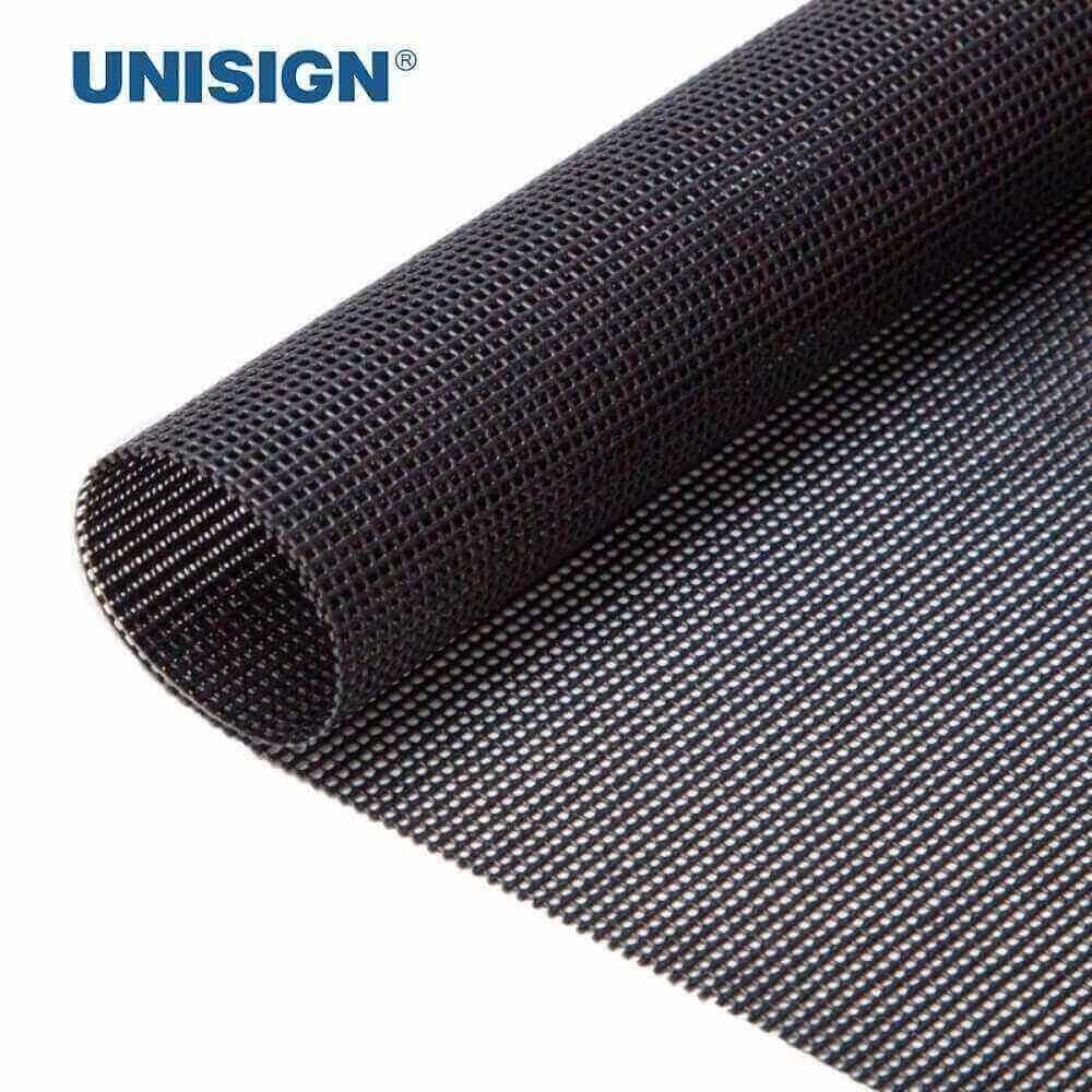 Premium vinyl mesh tarp made by Unisign — a breathable, tear-resistant PVC/vinyl-coated mesh designed for shade, containment, screening and heavy-duty site protection.