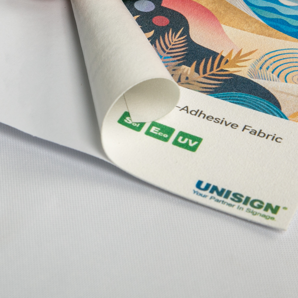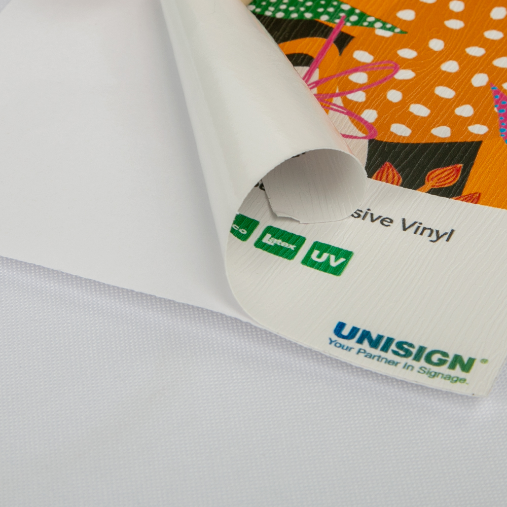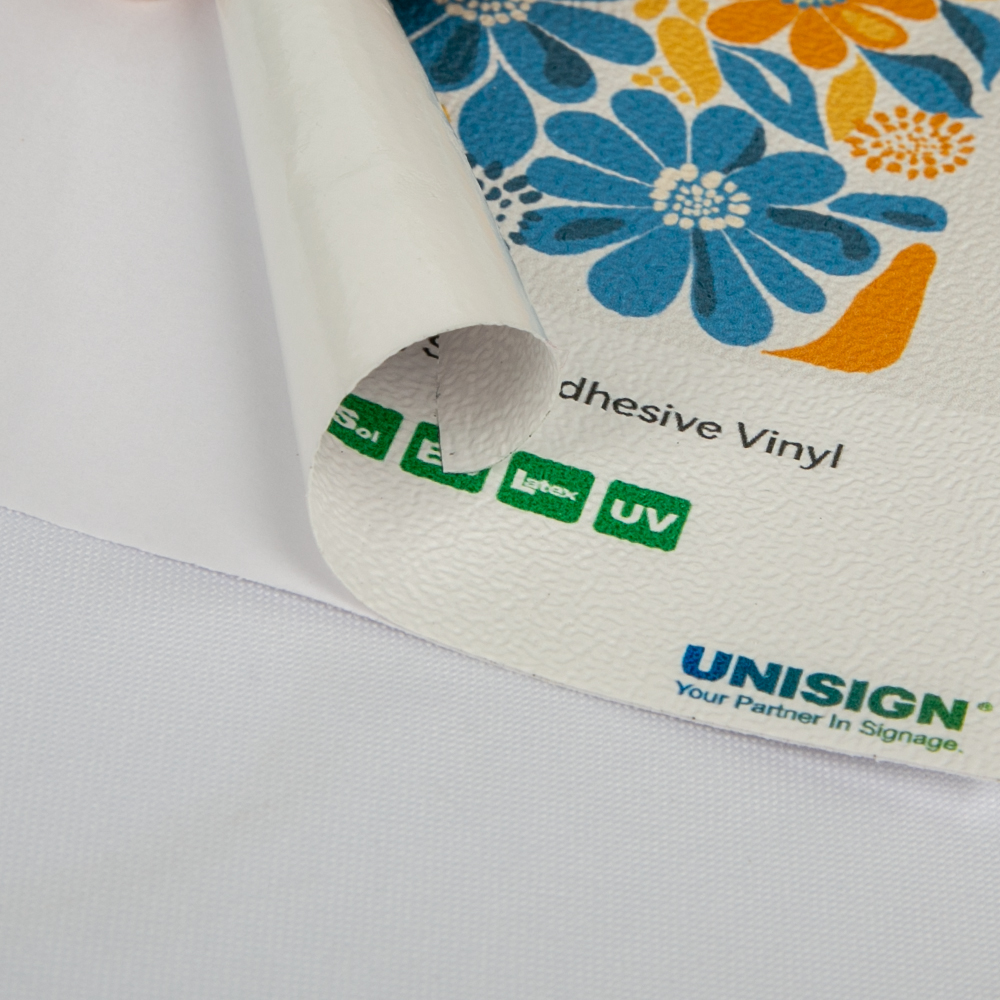 UNISIGN® Wall Covering offers excellent ink absorption and color penetration, ensuring vivid and long-lasting color expression. The material’s PVC film features uniformity and stability, ensuring high-quality performance across different applications. It is compatible with a wide range of super-wide format inkjet printers using solvent inks, guaranteeing excellent print results.